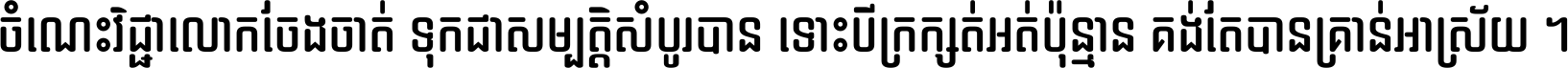 ចំណេះ​វិជ្ជា​លោក​ចែង​ចាត់ ទុក​ជា​សម្បត្តិ​សំបូរ​បាន ទោះ​បី​ក្រក្សត់​អត់​ប៉ុន្មាន គង់​តែ​បាន​គ្រាន់​អាស្រ័យ ។