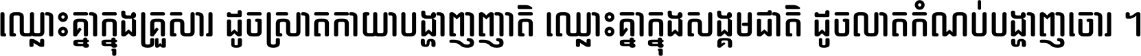 ឈ្លោះ​គ្នា​ក្នុង​គ្រួសារ ដូច​ស្រាត​កាយា​បង្ហាញ​ញាតិ ឈ្លោះគ្នាក្នុង​សង្គមជាតិ ដូច​លាត​កំណប់​បង្ហាញ​ចោរ ។