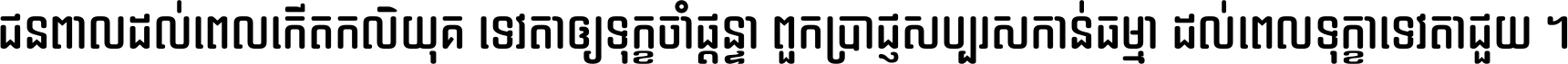 ជនពាល​ដល់​ពេល​កើត​កលិយុគ ទេវតា​ឲ្យ​ទុក្ខ​ចាំ​ផ្ដន្ទា ពួក​ប្រាជ្ញ​សប្បរស​កាន់​ធម្មា ដល់​ពេល​ទុក្ខា​ទេវតា​ជួយ ។