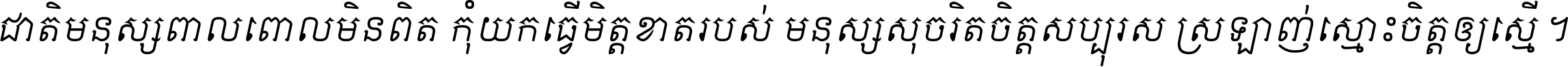 ជាតិ​មនុស្ស​ពាល​ពោល​មិន​ពិត កុំ​យក​ធ្វើ​មិត្ត​ខាត​របស់ មនុស្ស​សុចរិត​ចិត្ត​សប្បុរស ស្រឡាញ់​ស្មោះ​ចិត្ត​ឲ្យ​ស្មើ ។