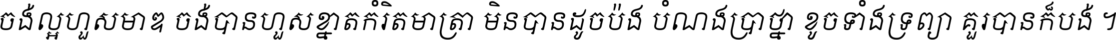 ចង​អ្វី​មិន​ជាប់​ស្មើ​សង្សារ ការ​អ្វី​មិន​ស្មើ​ការ​ប្រតិបត្តិ ស្ងាត់​អ្វី​មិន​ស្មើ​​ចិត្ត​អរហត្ត​ កាច​អ្វី​មិន​ស្មើ​ចិត្ត​ពាលា ។