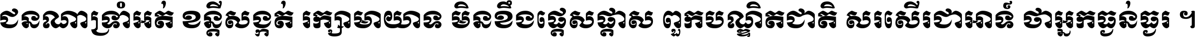 ចង​អ្វី​មិន​ជាប់​ស្មើ​សង្សារ ការ​អ្វី​មិន​ស្មើ​ការ​ប្រតិបត្តិ ស្ងាត់​អ្វី​មិន​ស្មើ​​ចិត្ត​អរហត្ត​ កាច​អ្វី​មិន​ស្មើ​ចិត្ត​ពាលា ។