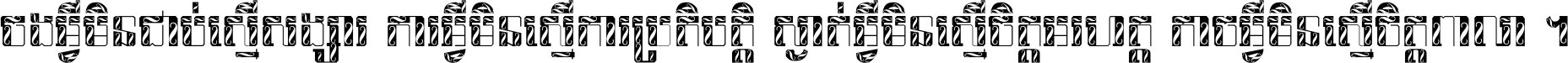 ចង​អ្វី​មិន​ជាប់​ស្មើ​សង្សារ ការ​អ្វី​មិន​ស្មើ​ការ​ប្រតិបត្តិ ស្ងាត់​អ្វី​មិន​ស្មើ​​ចិត្ត​អរហត្ត​ កាច​អ្វី​មិន​ស្មើ​ចិត្ត​ពាលា ។