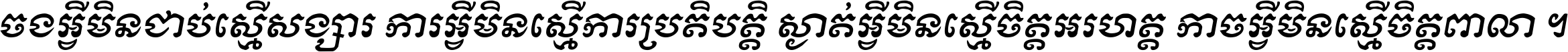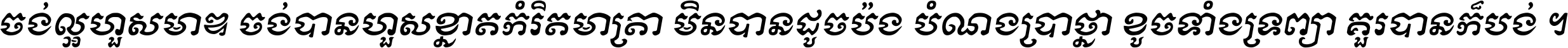 ចង​អ្វី​មិន​ជាប់​ស្មើ​សង្សារ ការ​អ្វី​មិន​ស្មើ​ការ​ប្រតិបត្តិ ស្ងាត់​អ្វី​មិន​ស្មើ​​ចិត្ត​អរហត្ត​ កាច​អ្វី​មិន​ស្មើ​ចិត្ត​ពាលា ។