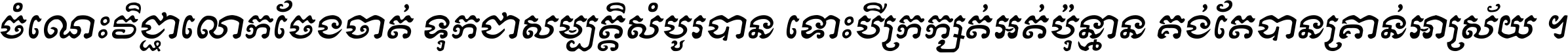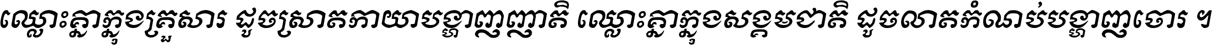 ចំណេះ​វិជ្ជា​លោក​ចែង​ចាត់ ទុក​ជា​សម្បត្តិ​សំបូរ​បាន ទោះ​បី​ក្រក្សត់​អត់​ប៉ុន្មាន គង់​តែ​បាន​គ្រាន់​អាស្រ័យ ។