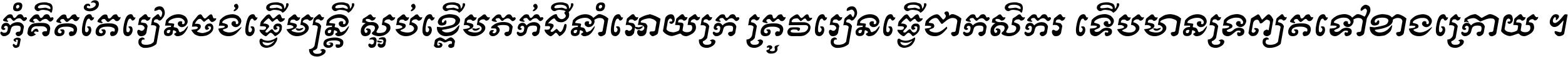 កុំ​គិត​តែ​រៀន​ចង់ធ្វើ​មន្ត្រី ស្អប់​ខ្ពើម​ភក់ដី​នាំអោយ​ក្រ ត្រូវ​រៀន​ធ្វើ​ជា​កសិករ ទើប​មានទ្រព្យ​ត​ទៅ​ខាង​ក្រោយ ។