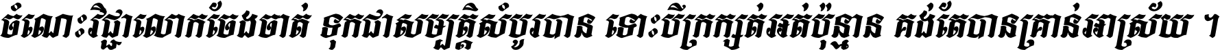 ចំណេះ​វិជ្ជា​លោក​ចែង​ចាត់ ទុក​ជា​សម្បត្តិ​សំបូរ​បាន ទោះ​បី​ក្រក្សត់​អត់​ប៉ុន្មាន គង់​តែ​បាន​គ្រាន់​អាស្រ័យ ។