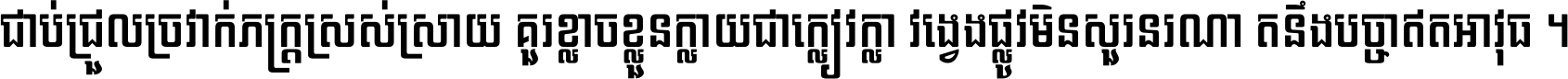 ចង​អ្វី​មិន​ជាប់​ស្មើ​សង្សារ ការ​អ្វី​មិន​ស្មើ​ការ​ប្រតិបត្តិ ស្ងាត់​អ្វី​មិន​ស្មើ​​ចិត្ត​អរហត្ត​ កាច​អ្វី​មិន​ស្មើ​ចិត្ត​ពាលា ។