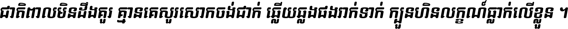 ជាតិ​ពាល​មិន​ដឹង​គួរ គ្មាន​គេ​សួរ​សោក​ចង់​ជាក់ ឆ្លើយ​ឆ្លង​ផង​រាក់​ទាក់​ ក្បួន​ហិន​លក្ខណ៍​ធ្លាក់​លើ​ខ្លួន ។