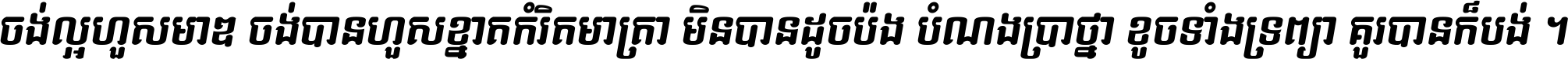ចង់​ល្អ​ហួស​មាឌ ចង់​បាន​ហួស​ខ្នាត​កំរិត​មាត្រា មិន​បាន​ដូច​ប៉ង បំណង​ប្រាថ្នា ខូច​ទាំងទ្រព្យា គួរ​បាន​ក៏បង់ ។