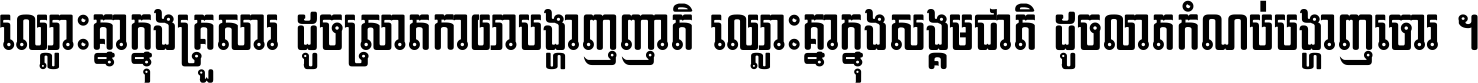 ឈ្លោះ​គ្នា​ក្នុង​គ្រួសារ ដូច​ស្រាត​កាយា​បង្ហាញ​ញាតិ ឈ្លោះគ្នាក្នុង​សង្គមជាតិ ដូច​លាត​កំណប់​បង្ហាញ​ចោរ ។