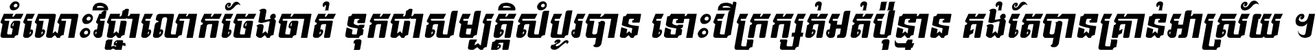 ចំណេះ​វិជ្ជា​លោក​ចែង​ចាត់ ទុក​ជា​សម្បត្តិ​សំបូរ​បាន ទោះ​បី​ក្រក្សត់​អត់​ប៉ុន្មាន គង់​តែ​បាន​គ្រាន់​អាស្រ័យ ។