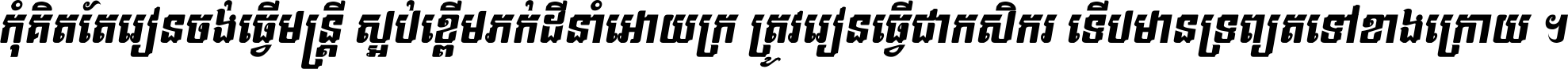 កុំ​គិត​តែ​រៀន​ចង់ធ្វើ​មន្ត្រី ស្អប់​ខ្ពើម​ភក់ដី​នាំអោយ​ក្រ ត្រូវ​រៀន​ធ្វើ​ជា​កសិករ ទើប​មានទ្រព្យ​ត​ទៅ​ខាង​ក្រោយ ។