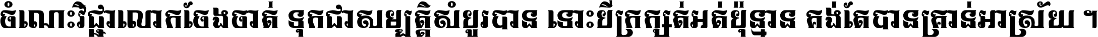 ចំណេះ​វិជ្ជា​លោក​ចែង​ចាត់ ទុក​ជា​សម្បត្តិ​សំបូរ​បាន ទោះ​បី​ក្រក្សត់​អត់​ប៉ុន្មាន គង់​តែ​បាន​គ្រាន់​អាស្រ័យ ។