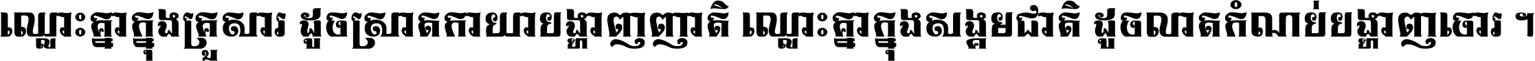 ឈ្លោះ​គ្នា​ក្នុង​គ្រួសារ ដូច​ស្រាត​កាយា​បង្ហាញ​ញាតិ ឈ្លោះគ្នាក្នុង​សង្គមជាតិ ដូច​លាត​កំណប់​បង្ហាញ​ចោរ ។