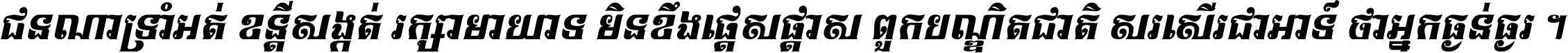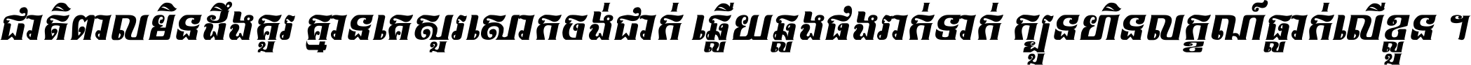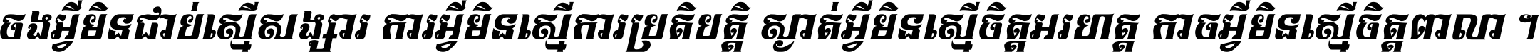 ចង​អ្វី​មិន​ជាប់​ស្មើ​សង្សារ ការ​អ្វី​មិន​ស្មើ​ការ​ប្រតិបត្តិ ស្ងាត់​អ្វី​មិន​ស្មើ​​ចិត្ត​អរហត្ត​ កាច​អ្វី​មិន​ស្មើ​ចិត្ត​ពាលា ។