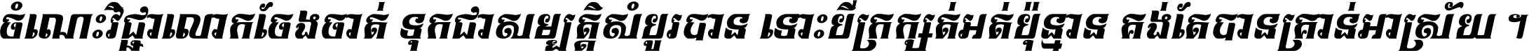 ចំណេះ​វិជ្ជា​លោក​ចែង​ចាត់ ទុក​ជា​សម្បត្តិ​សំបូរ​បាន ទោះ​បី​ក្រក្សត់​អត់​ប៉ុន្មាន គង់​តែ​បាន​គ្រាន់​អាស្រ័យ ។