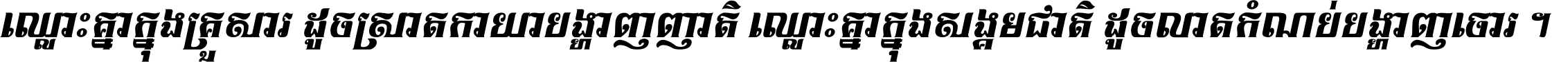 ឈ្លោះ​គ្នា​ក្នុង​គ្រួសារ ដូច​ស្រាត​កាយា​បង្ហាញ​ញាតិ ឈ្លោះគ្នាក្នុង​សង្គមជាតិ ដូច​លាត​កំណប់​បង្ហាញ​ចោរ ។