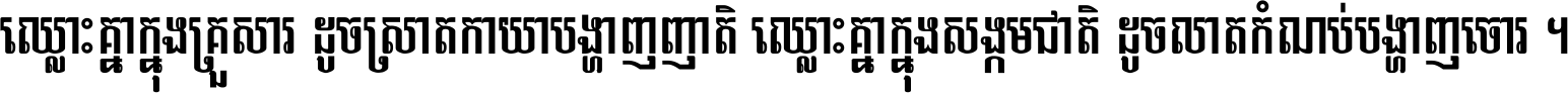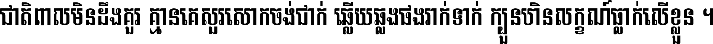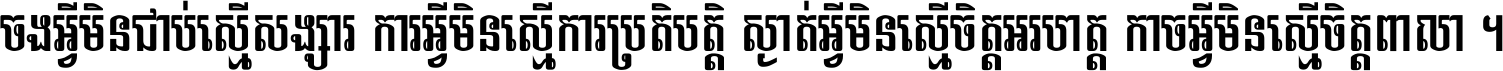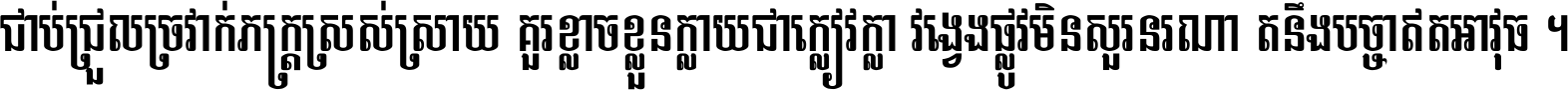 ចង​អ្វី​មិន​ជាប់​ស្មើ​សង្សារ ការ​អ្វី​មិន​ស្មើ​ការ​ប្រតិបត្តិ ស្ងាត់​អ្វី​មិន​ស្មើ​​ចិត្ត​អរហត្ត​ កាច​អ្វី​មិន​ស្មើ​ចិត្ត​ពាលា ។