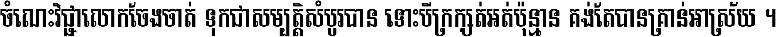 ចំណេះ​វិជ្ជា​លោក​ចែង​ចាត់ ទុក​ជា​សម្បត្តិ​សំបូរ​បាន ទោះ​បី​ក្រក្សត់​អត់​ប៉ុន្មាន គង់​តែ​បាន​គ្រាន់​អាស្រ័យ ។