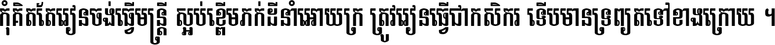 កុំ​គិត​តែ​រៀន​ចង់ធ្វើ​មន្ត្រី ស្អប់​ខ្ពើម​ភក់ដី​នាំអោយ​ក្រ ត្រូវ​រៀន​ធ្វើ​ជា​កសិករ ទើប​មានទ្រព្យ​ត​ទៅ​ខាង​ក្រោយ ។