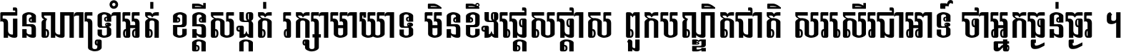ជនណា​ទ្រាំអត់ ខន្តី​សង្កត់ រក្សា​មាយាទ មិន​ខឹង​ផ្ដេសផ្ដាស ពួក​បណ្ឌិតជាតិ សរសើរ​ជា​អាទ៍ ថា​អ្នក​ធ្ងន់​ធ្ងរ ។