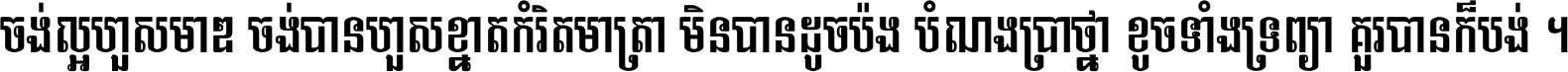 ចង់​ល្អ​ហួស​មាឌ ចង់​បាន​ហួស​ខ្នាត​កំរិត​មាត្រា មិន​បាន​ដូច​ប៉ង បំណង​ប្រាថ្នា ខូច​ទាំងទ្រព្យា គួរ​បាន​ក៏បង់ ។