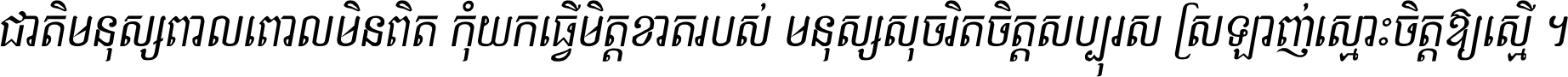ជាតិ​មនុស្ស​ពាល​ពោល​មិន​ពិត កុំ​យក​ធ្វើ​មិត្ត​ខាត​របស់ មនុស្ស​សុចរិត​ចិត្ត​សប្បុរស ស្រឡាញ់​ស្មោះ​ចិត្ត​ឲ្យ​ស្មើ ។