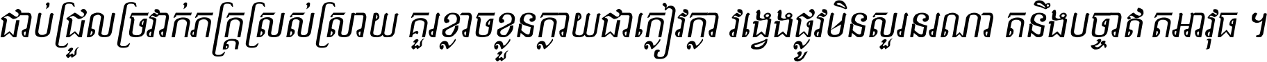 ចង​អ្វី​មិន​ជាប់​ស្មើ​សង្សារ ការ​អ្វី​មិន​ស្មើ​ការ​ប្រតិបត្តិ ស្ងាត់​អ្វី​មិន​ស្មើ​​ចិត្ត​អរហត្ត​ កាច​អ្វី​មិន​ស្មើ​ចិត្ត​ពាលា ។
