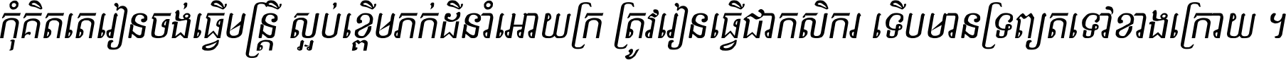 កុំ​គិត​តែ​រៀន​ចង់ធ្វើ​មន្ត្រី ស្អប់​ខ្ពើម​ភក់ដី​នាំអោយ​ក្រ ត្រូវ​រៀន​ធ្វើ​ជា​កសិករ ទើប​មានទ្រព្យ​ត​ទៅ​ខាង​ក្រោយ ។
