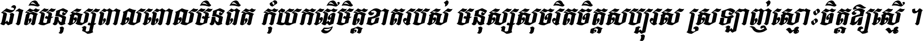 ជាតិ​មនុស្ស​ពាល​ពោល​មិន​ពិត កុំ​យក​ធ្វើ​មិត្ត​ខាត​របស់ មនុស្ស​សុចរិត​ចិត្ត​សប្បុរស ស្រឡាញ់​ស្មោះ​ចិត្ត​ឲ្យ​ស្មើ ។
