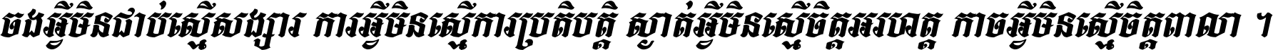 ចង​អ្វី​មិន​ជាប់​ស្មើ​សង្សារ ការ​អ្វី​មិន​ស្មើ​ការ​ប្រតិបត្តិ ស្ងាត់​អ្វី​មិន​ស្មើ​​ចិត្ត​អរហត្ត​ កាច​អ្វី​មិន​ស្មើ​ចិត្ត​ពាលា ។