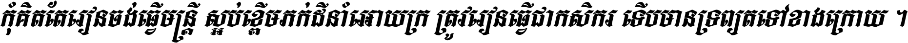 កុំ​គិត​តែ​រៀន​ចង់ធ្វើ​មន្ត្រី ស្អប់​ខ្ពើម​ភក់ដី​នាំអោយ​ក្រ ត្រូវ​រៀន​ធ្វើ​ជា​កសិករ ទើប​មានទ្រព្យ​ត​ទៅ​ខាង​ក្រោយ ។