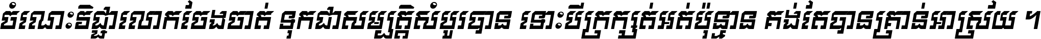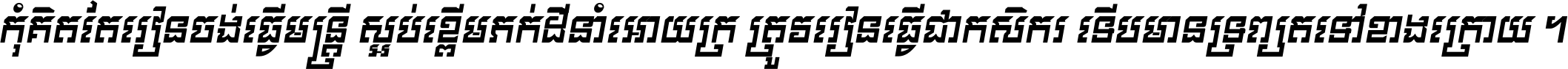 ចំណេះ​វិជ្ជា​លោក​ចែង​ចាត់ ទុក​ជា​សម្បត្តិ​សំបូរ​បាន ទោះ​បី​ក្រក្សត់​អត់​ប៉ុន្មាន គង់​តែ​បាន​គ្រាន់​អាស្រ័យ ។