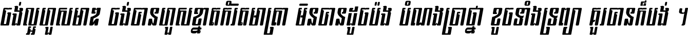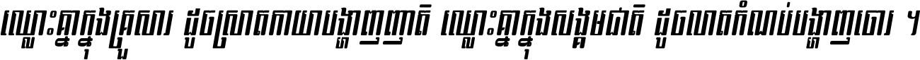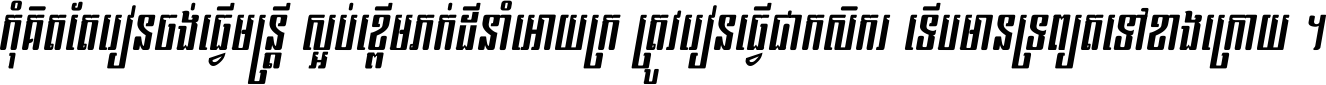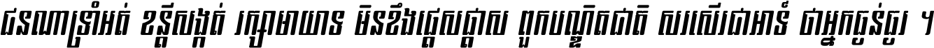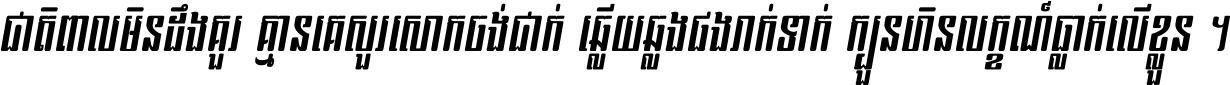 ចង​អ្វី​មិន​ជាប់​ស្មើ​សង្សារ ការ​អ្វី​មិន​ស្មើ​ការ​ប្រតិបត្តិ ស្ងាត់​អ្វី​មិន​ស្មើ​​ចិត្ត​អរហត្ត​ កាច​អ្វី​មិន​ស្មើ​ចិត្ត​ពាលា ។