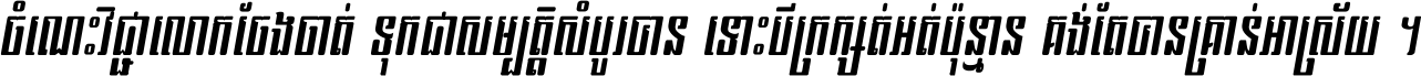 ចំណេះ​វិជ្ជា​លោក​ចែង​ចាត់ ទុក​ជា​សម្បត្តិ​សំបូរ​បាន ទោះ​បី​ក្រក្សត់​អត់​ប៉ុន្មាន គង់​តែ​បាន​គ្រាន់​អាស្រ័យ ។