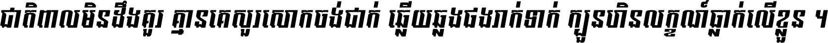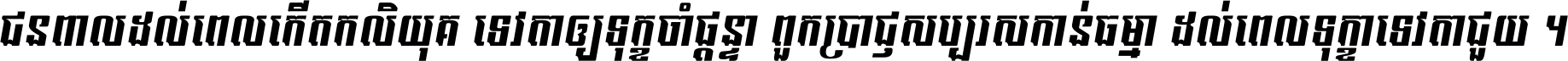 ជនពាល​ដល់​ពេល​កើត​កលិយុគ ទេវតា​ឲ្យ​ទុក្ខ​ចាំ​ផ្ដន្ទា ពួក​ប្រាជ្ញ​សប្បរស​កាន់​ធម្មា ដល់​ពេល​ទុក្ខា​ទេវតា​ជួយ ។