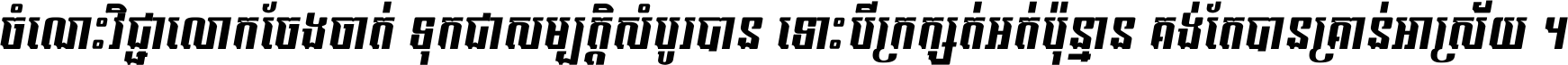ចំណេះ​វិជ្ជា​លោក​ចែង​ចាត់ ទុក​ជា​សម្បត្តិ​សំបូរ​បាន ទោះ​បី​ក្រក្សត់​អត់​ប៉ុន្មាន គង់​តែ​បាន​គ្រាន់​អាស្រ័យ ។
