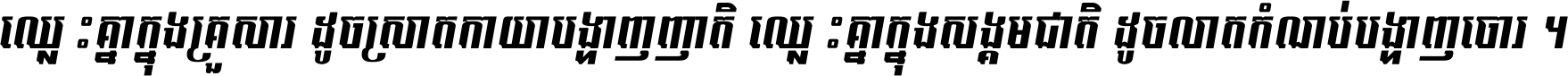 ឈ្លោះ​គ្នា​ក្នុង​គ្រួសារ ដូច​ស្រាត​កាយា​បង្ហាញ​ញាតិ ឈ្លោះគ្នាក្នុង​សង្គមជាតិ ដូច​លាត​កំណប់​បង្ហាញ​ចោរ ។