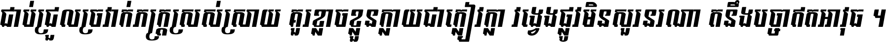 ជាតិ​មនុស្ស​ពាល​ពោល​មិន​ពិត កុំ​យក​ធ្វើ​មិត្ត​ខាត​របស់ មនុស្ស​សុចរិត​ចិត្ត​សប្បុរស ស្រឡាញ់​ស្មោះ​ចិត្ត​ឲ្យ​ស្មើ ។