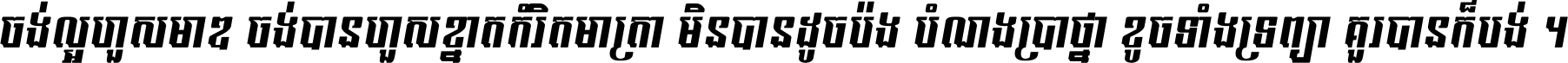 ចង់​ល្អ​ហួស​មាឌ ចង់​បាន​ហួស​ខ្នាត​កំរិត​មាត្រា មិន​បាន​ដូច​ប៉ង បំណង​ប្រាថ្នា ខូច​ទាំងទ្រព្យា គួរ​បាន​ក៏បង់ ។