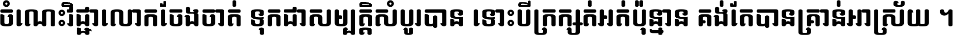 ចំណេះ​វិជ្ជា​លោក​ចែង​ចាត់ ទុក​ជា​សម្បត្តិ​សំបូរ​បាន ទោះ​បី​ក្រក្សត់​អត់​ប៉ុន្មាន គង់​តែ​បាន​គ្រាន់​អាស្រ័យ ។