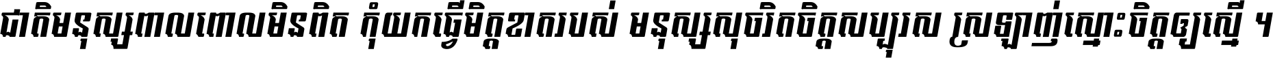 ជាតិ​មនុស្ស​ពាល​ពោល​មិន​ពិត កុំ​យក​ធ្វើ​មិត្ត​ខាត​របស់ មនុស្ស​សុចរិត​ចិត្ត​សប្បុរស ស្រឡាញ់​ស្មោះ​ចិត្ត​ឲ្យ​ស្មើ ។