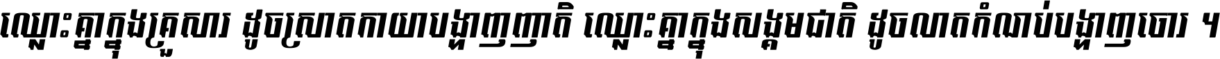 ឈ្លោះ​គ្នា​ក្នុង​គ្រួសារ ដូច​ស្រាត​កាយា​បង្ហាញ​ញាតិ ឈ្លោះគ្នាក្នុង​សង្គមជាតិ ដូច​លាត​កំណប់​បង្ហាញ​ចោរ ។