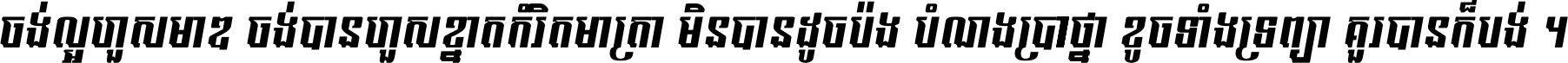 ចង់​ល្អ​ហួស​មាឌ ចង់​បាន​ហួស​ខ្នាត​កំរិត​មាត្រា មិន​បាន​ដូច​ប៉ង បំណង​ប្រាថ្នា ខូច​ទាំងទ្រព្យា គួរ​បាន​ក៏បង់ ។