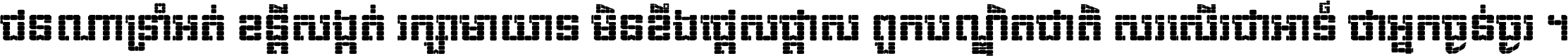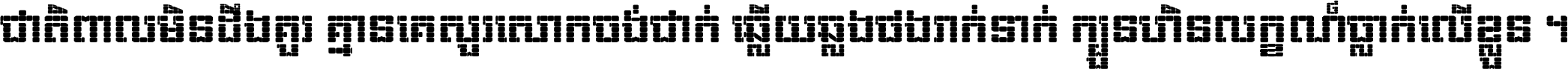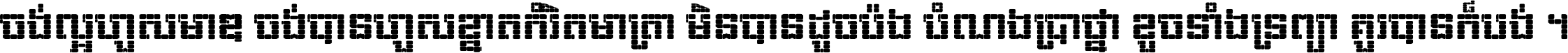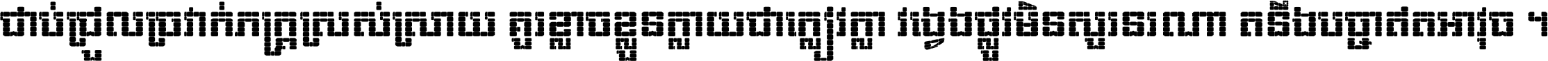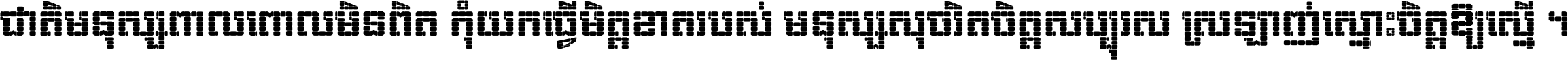 ចង​អ្វី​មិន​ជាប់​ស្មើ​សង្សារ ការ​អ្វី​មិន​ស្មើ​ការ​ប្រតិបត្តិ ស្ងាត់​អ្វី​មិន​ស្មើ​​ចិត្ត​អរហត្ត​ កាច​អ្វី​មិន​ស្មើ​ចិត្ត​ពាលា ។