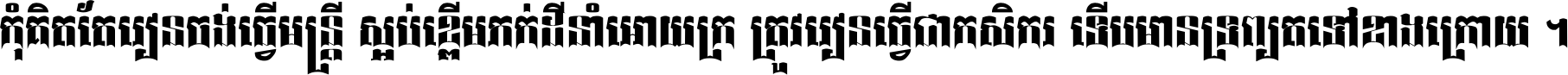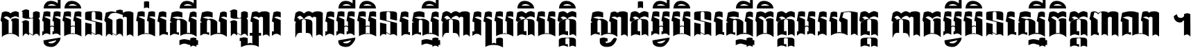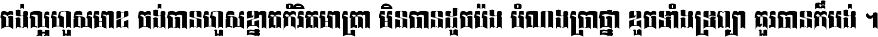 ចង​អ្វី​មិន​ជាប់​ស្មើ​សង្សារ ការ​អ្វី​មិន​ស្មើ​ការ​ប្រតិបត្តិ ស្ងាត់​អ្វី​មិន​ស្មើ​​ចិត្ត​អរហត្ត​ កាច​អ្វី​មិន​ស្មើ​ចិត្ត​ពាលា ។