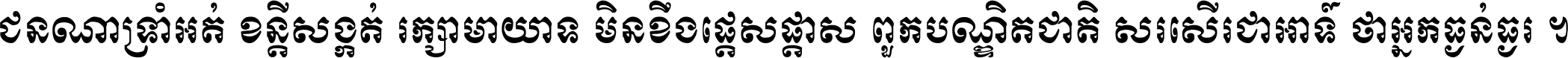 ចង​អ្វី​មិន​ជាប់​ស្មើ​សង្សារ ការ​អ្វី​មិន​ស្មើ​ការ​ប្រតិបត្តិ ស្ងាត់​អ្វី​មិន​ស្មើ​​ចិត្ត​អរហត្ត​ កាច​អ្វី​មិន​ស្មើ​ចិត្ត​ពាលា ។
