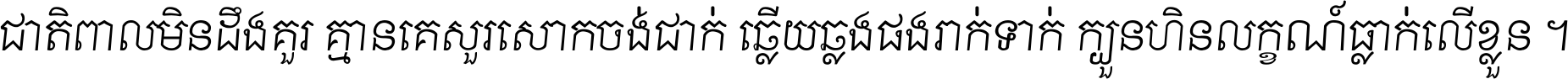 ជាតិ​ពាល​មិន​ដឹង​គួរ គ្មាន​គេ​សួរ​សោក​ចង់​ជាក់ ឆ្លើយ​ឆ្លង​ផង​រាក់​ទាក់​ ក្បួន​ហិន​លក្ខណ៍​ធ្លាក់​លើ​ខ្លួន ។