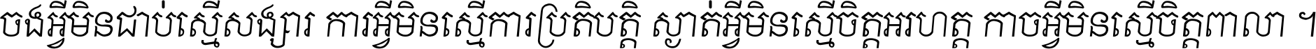 ចង​អ្វី​មិន​ជាប់​ស្មើ​សង្សារ ការ​អ្វី​មិន​ស្មើ​ការ​ប្រតិបត្តិ ស្ងាត់​អ្វី​មិន​ស្មើ​​ចិត្ត​អរហត្ត​ កាច​អ្វី​មិន​ស្មើ​ចិត្ត​ពាលា ។